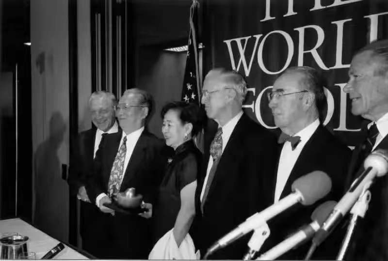 △1993年何康(左二)荣获被称为农业诺贝尔奖的世界粮食奖