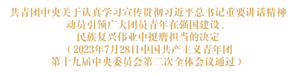 为认真学习宣传贯彻习近平总书记在同团中央新一届领导班子集体谈话时的重要讲话精神,落实党中央致词精神和团十九大部署,着力加强对青年的政治引领,动员引领广大团员青年在强国建设、民族复兴伟业中挺膺担当,作出如下决定。