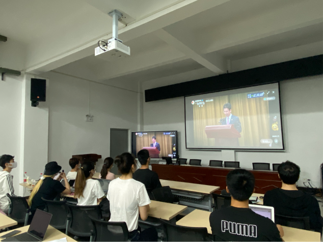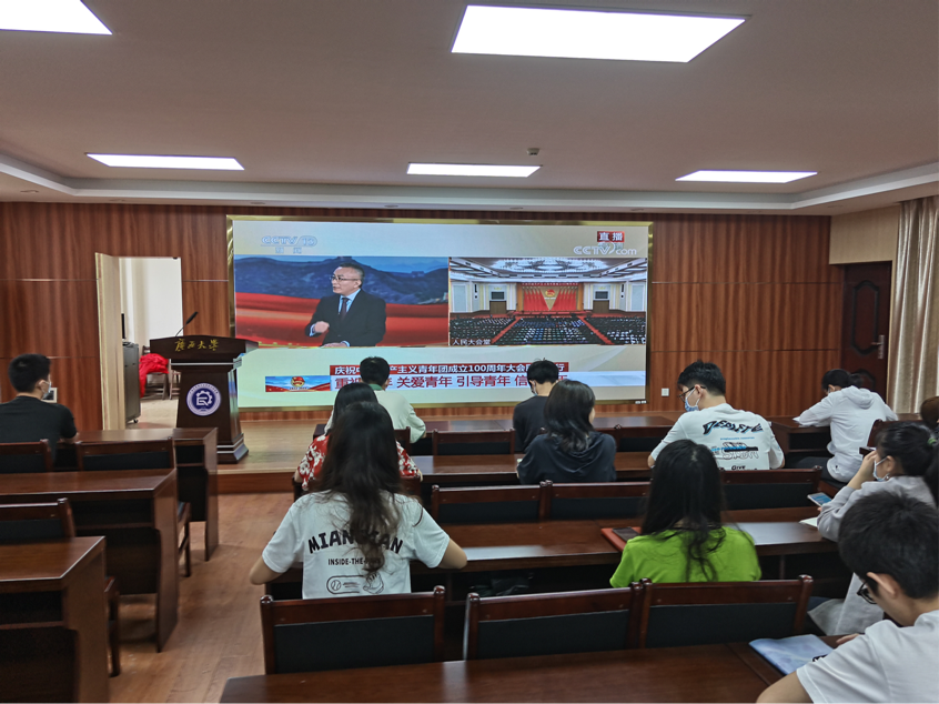 5月10日上午,庆祝中国共产主义青年团成立100周年大会在北京人民大会堂隆重举行。中共中央总书记、国家主席、中央军委主席习近平出席会议并发表重要讲话。我校共青团组织团员青年、青年团干、学生干部代表、“青马工程”学员代表集中收看了本次大会实时直播,深入学习习近平总书记重要讲话精神,共同庆祝中国共产主义青年团成立100周年。师生们端坐在大屏幕前,聚精会神观看,现场掌声不断,气氛热烈。