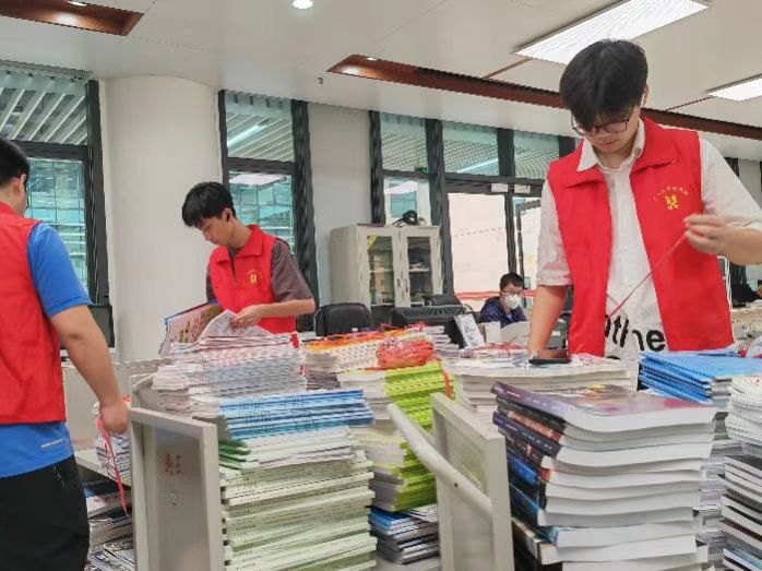 数学与信息科学学院团委组织志愿者前往图书馆进行图书归类整理工作。