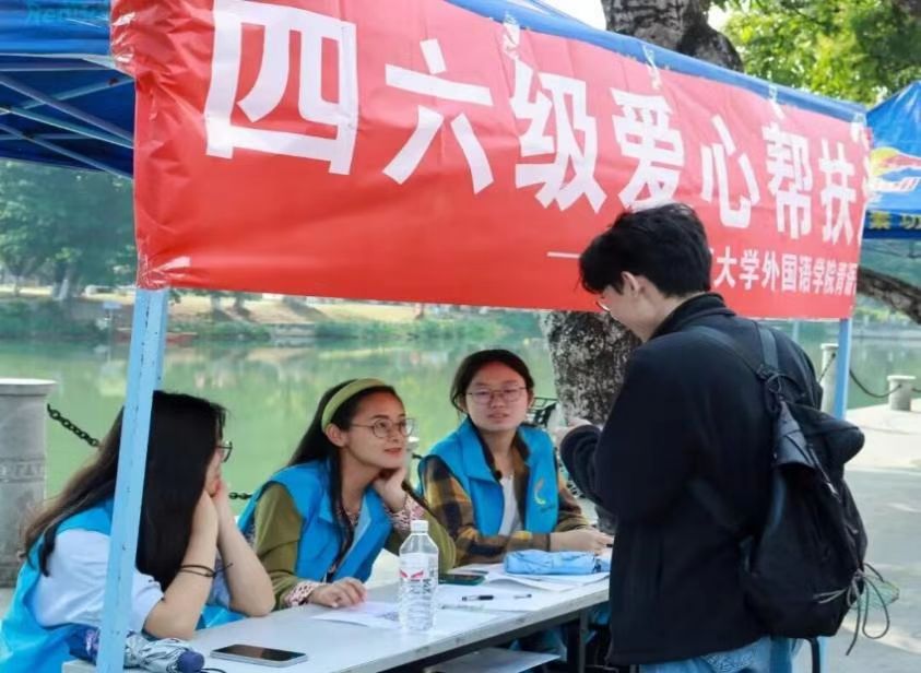 外国语学院青语协会进行四六级爱心帮扶活动,青年志愿者和被帮扶对象共同参与,双方共同进步,以实际行动践行“爱心奉献社会,双手实践人生”的宗旨。