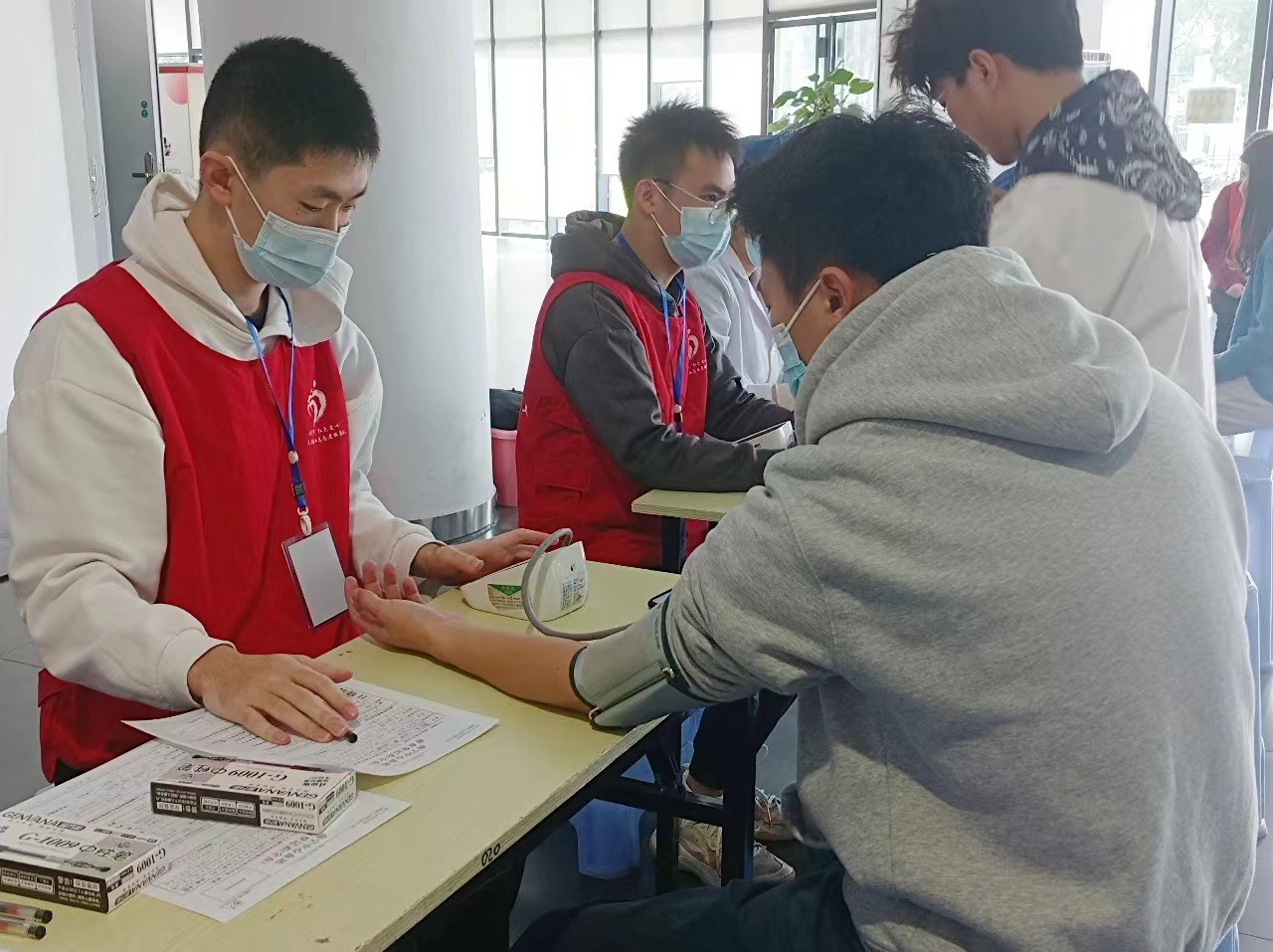 医学院医启志愿者协会进行量血压,测血型活动,向同学们普及健康方面的知识。