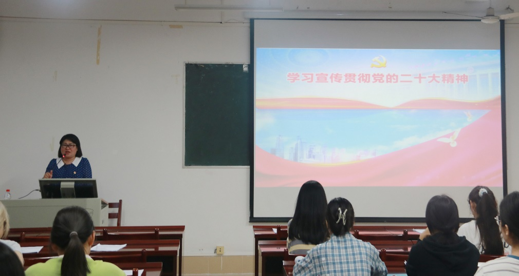 在第一部分中,赫英娜老师着重强调了学习党的二十大精神对于文学院团员青年成长成才的重要意义,并抓住文学院的学科特色,鼓励同学们从汉语言文学专业角度切入,深入思考和学习党的二十大精神。此外,赫英娜老师还给同学们展示了学习笔记,与同学们分享了在学习党的二十大精神中的心得与体会。