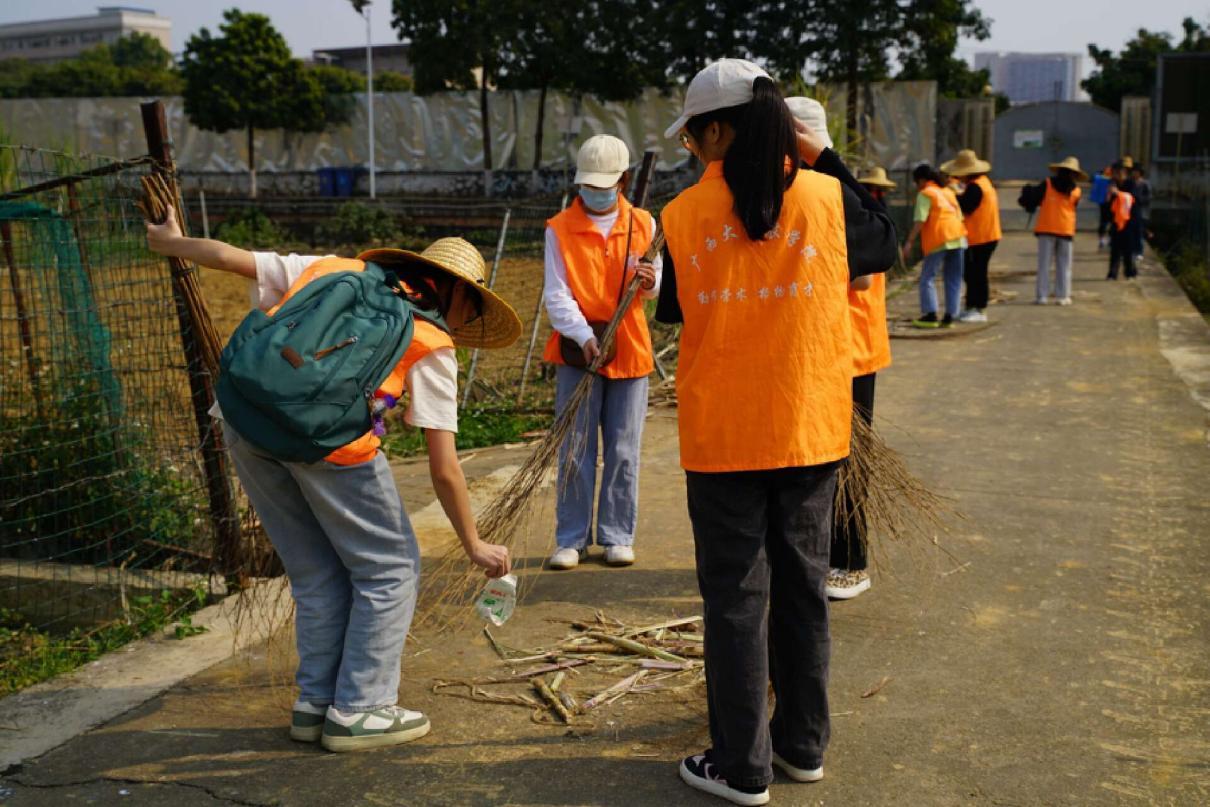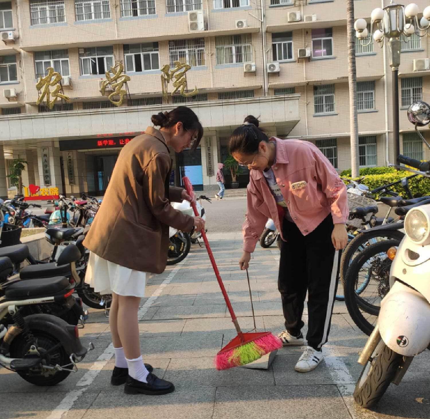 (农学191班团支部的同学们在打扫学院门口空地)