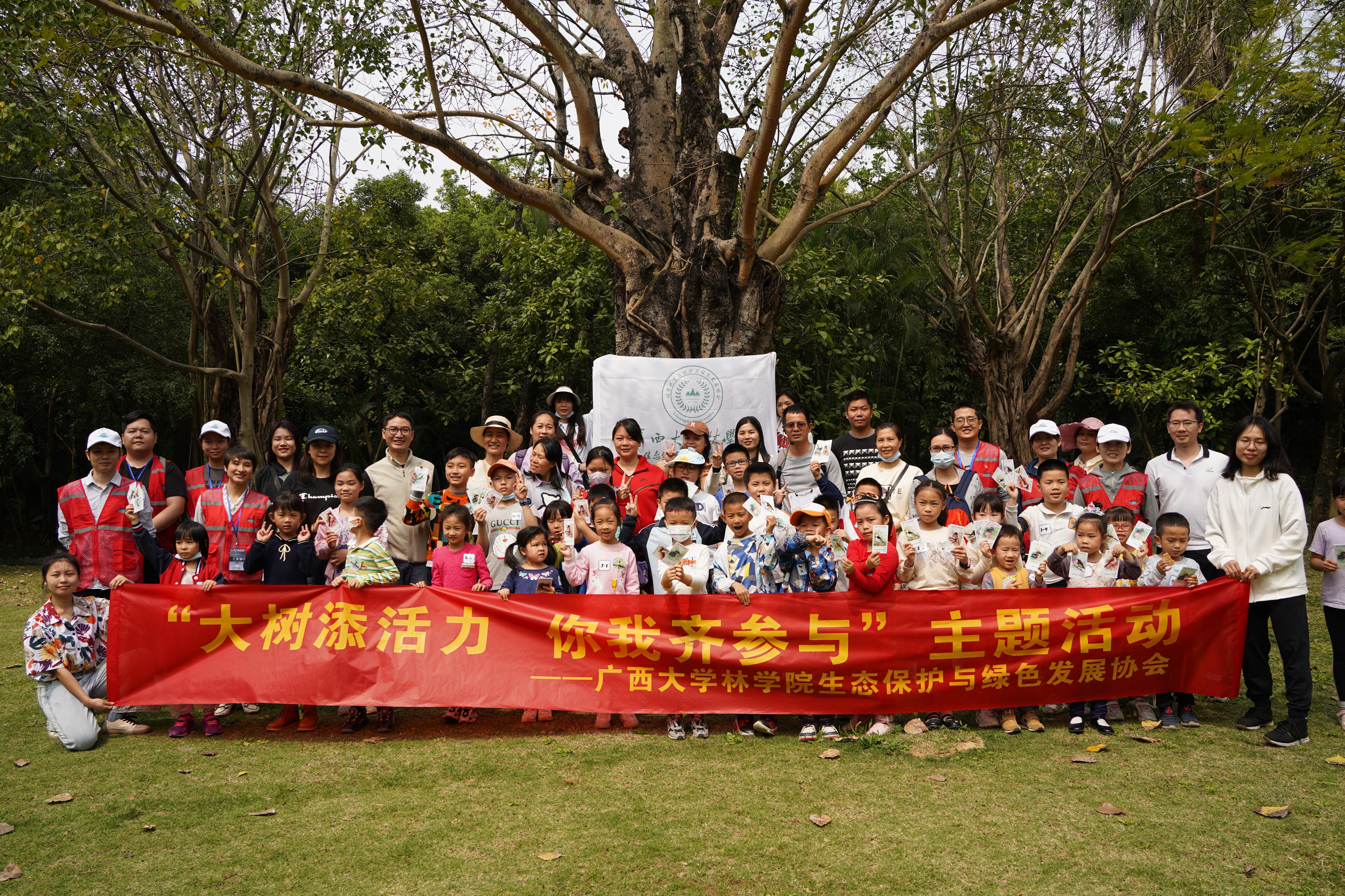 与此同时,林学院罗应华教授带领协会志愿者前往南湖公园开展“大树添活力,你我齐参与”2023年植树节科普研学活动,开展了科普报告、观鸟、大树等主题科普研学实践活动,将蓝天绿地变为课堂,宣传保护生态环境的重要性。