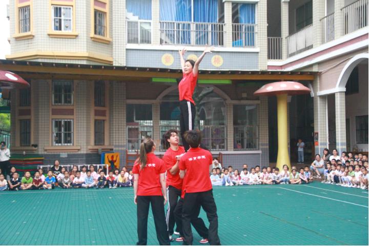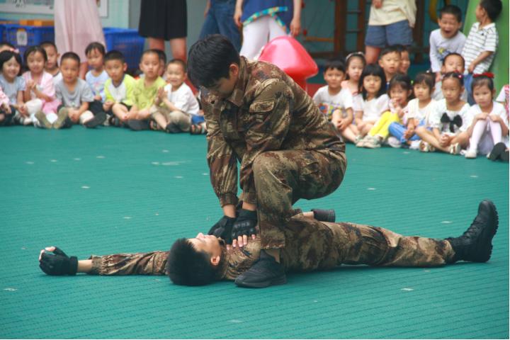 在活动过程中,团队成员向二幼的小朋友们展示了体操、足球、绳梯、格斗等技能展示,引起了小朋友们的极大兴趣,得到了一致好评。
