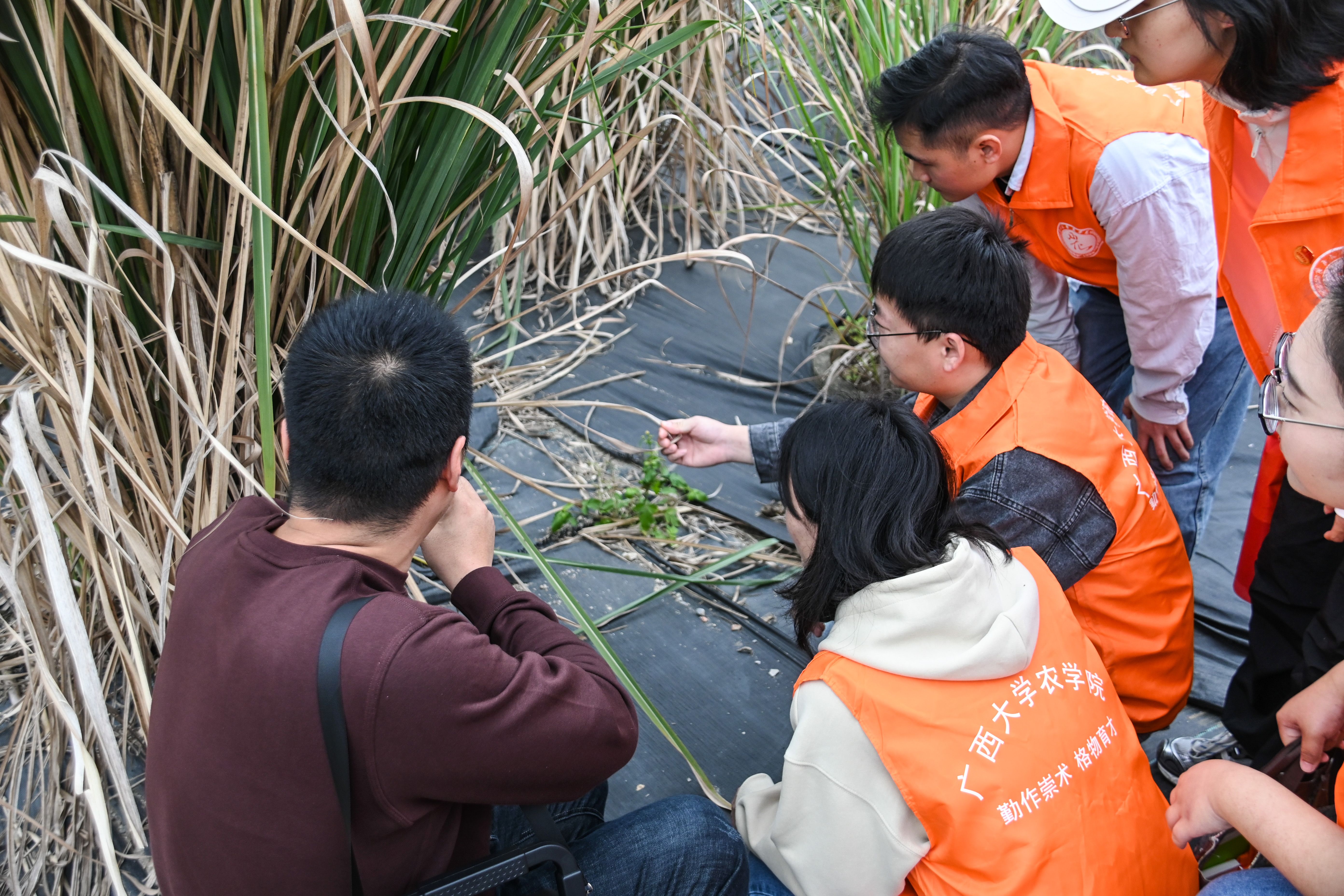 团员们在甘蔗田间调研